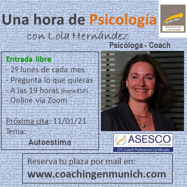 Esta es la razón que me ha motivado a aportar mi granito de arena y organizar todos los segundos lunes de cada mes, a las 19 horas (hora española) un encuentro en el que poder compartir alguna herramienta con los participantes, y que estos a su vez tengan la posibilidad de hacer preguntas y expresar dudas relacionadas con la psicología, el coaching y el desarrollo personal.